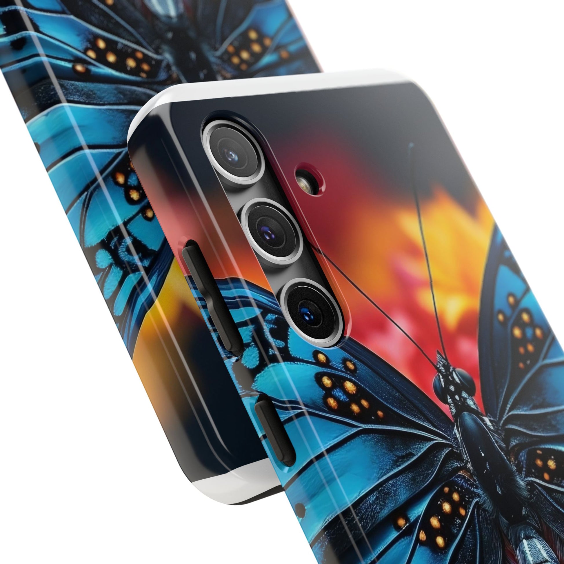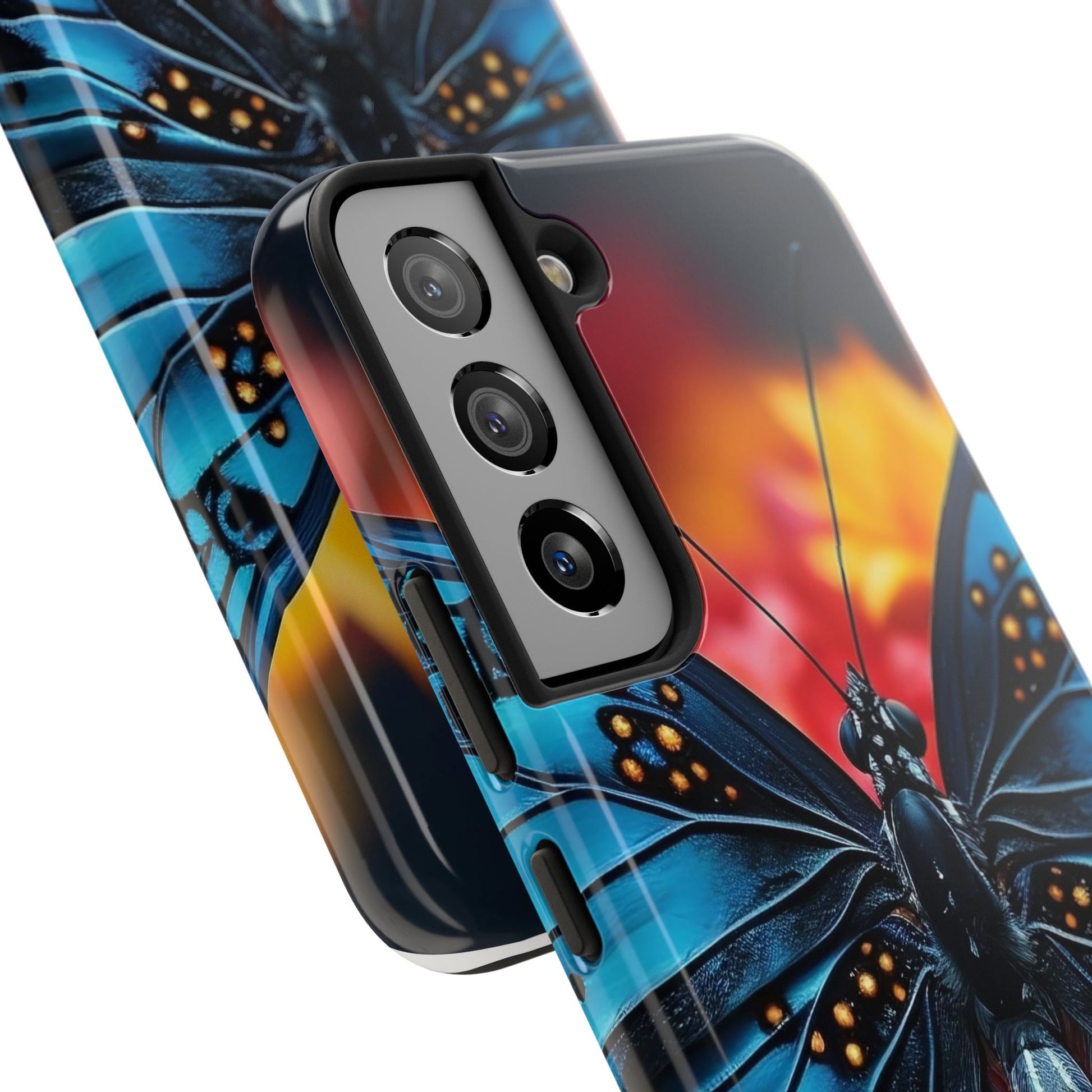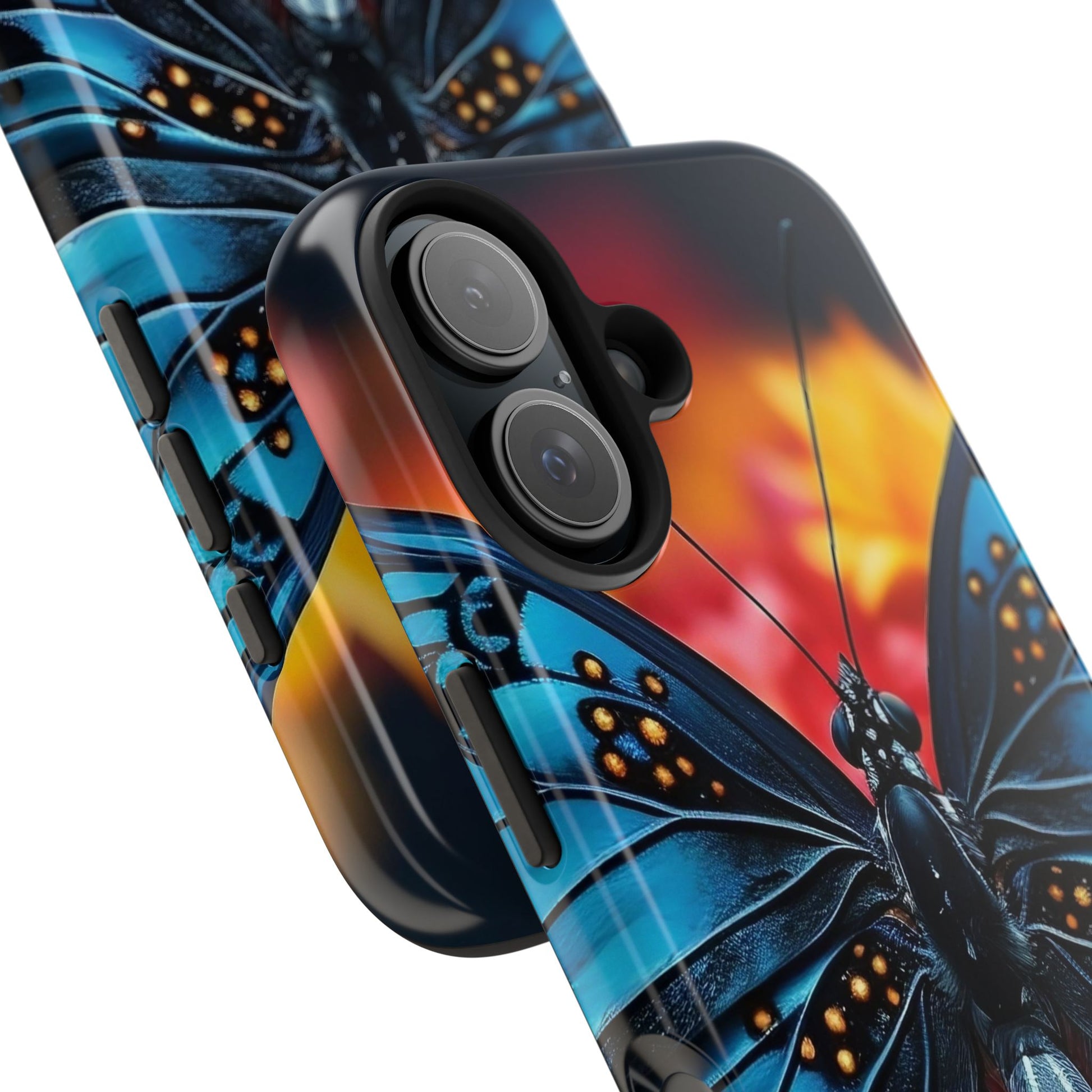 A tough phone case featuring a unique butterfly design, perfect for butterfly lovers and insect enthusiasts. This fashion statement piece is a conversation starter and adds a touch of nature to your everyday life. Ideal for individuals who appreciate nature and want to protect their phone in style. Relevance: Everyday use, nature enthusiasts, butterfly lovers, fashion-forward individuals. Occasions: Birthdays, holidays, special occasions.