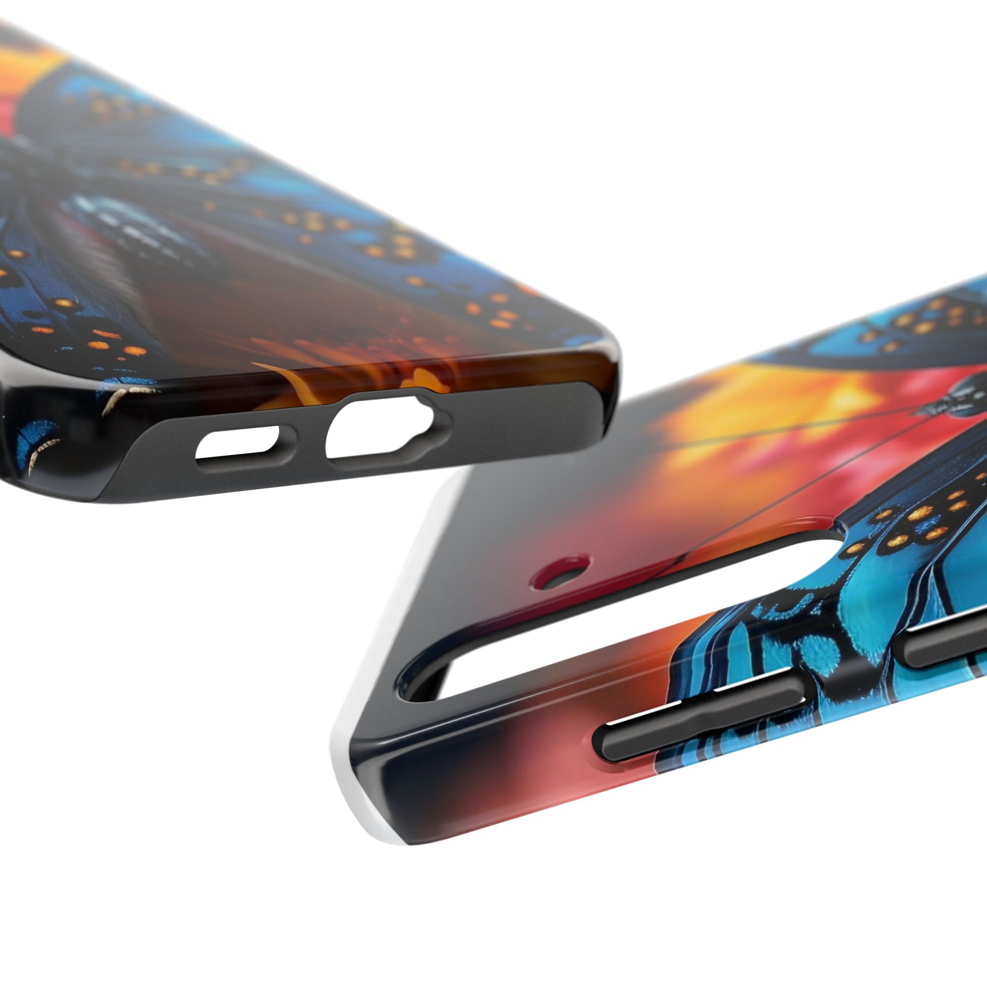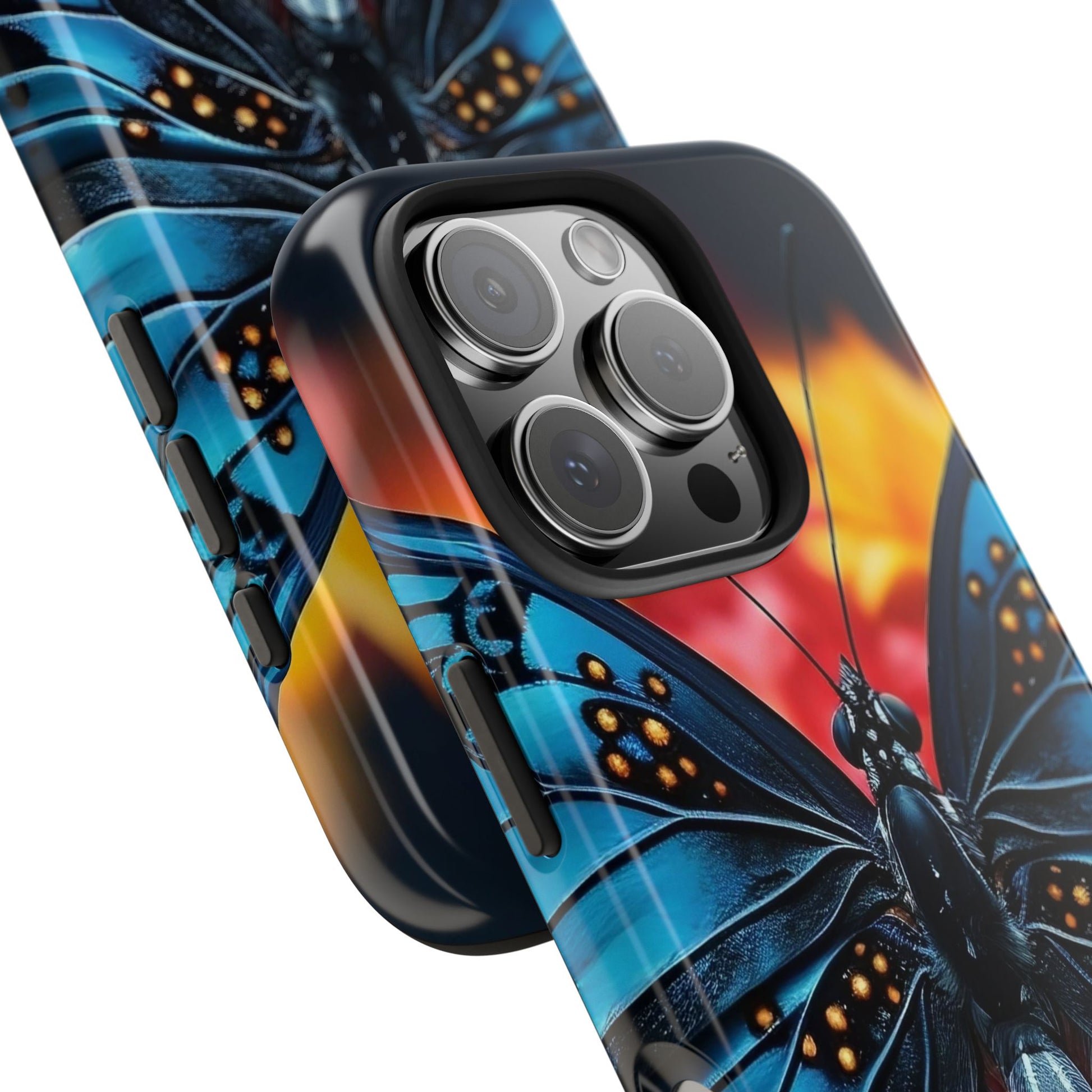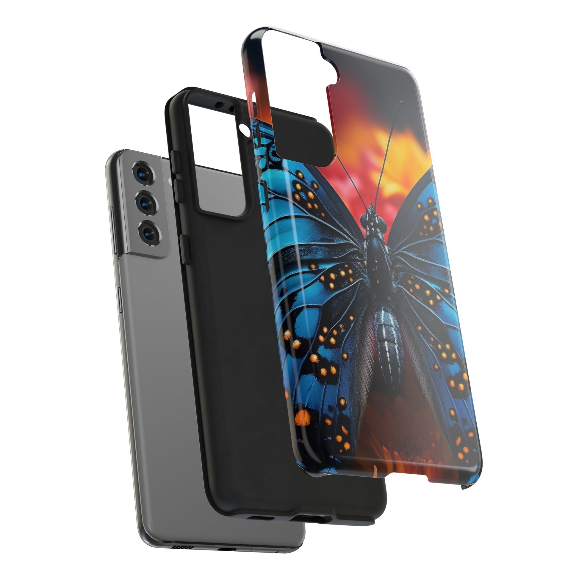 A tough phone case featuring a unique butterfly design, perfect for butterfly lovers and insect enthusiasts. This fashion statement piece is a conversation starter and adds a touch of nature to your everyday life. Ideal for individuals who appreciate nature and want to protect their phone in style. Relevance: Everyday use, nature enthusiasts, butterfly lovers, fashion-forward individuals. Occasions: Birthdays, holidays, special occasions.