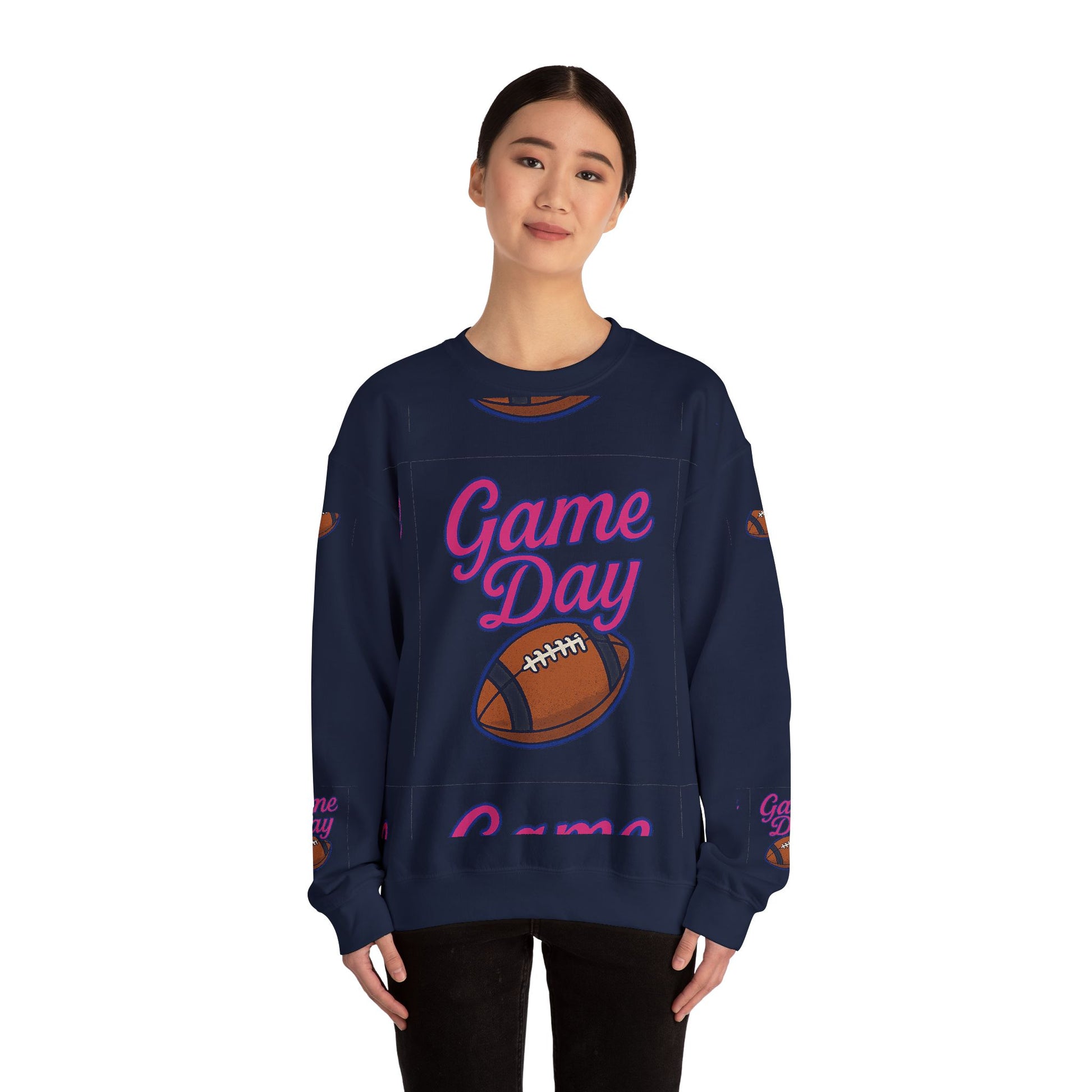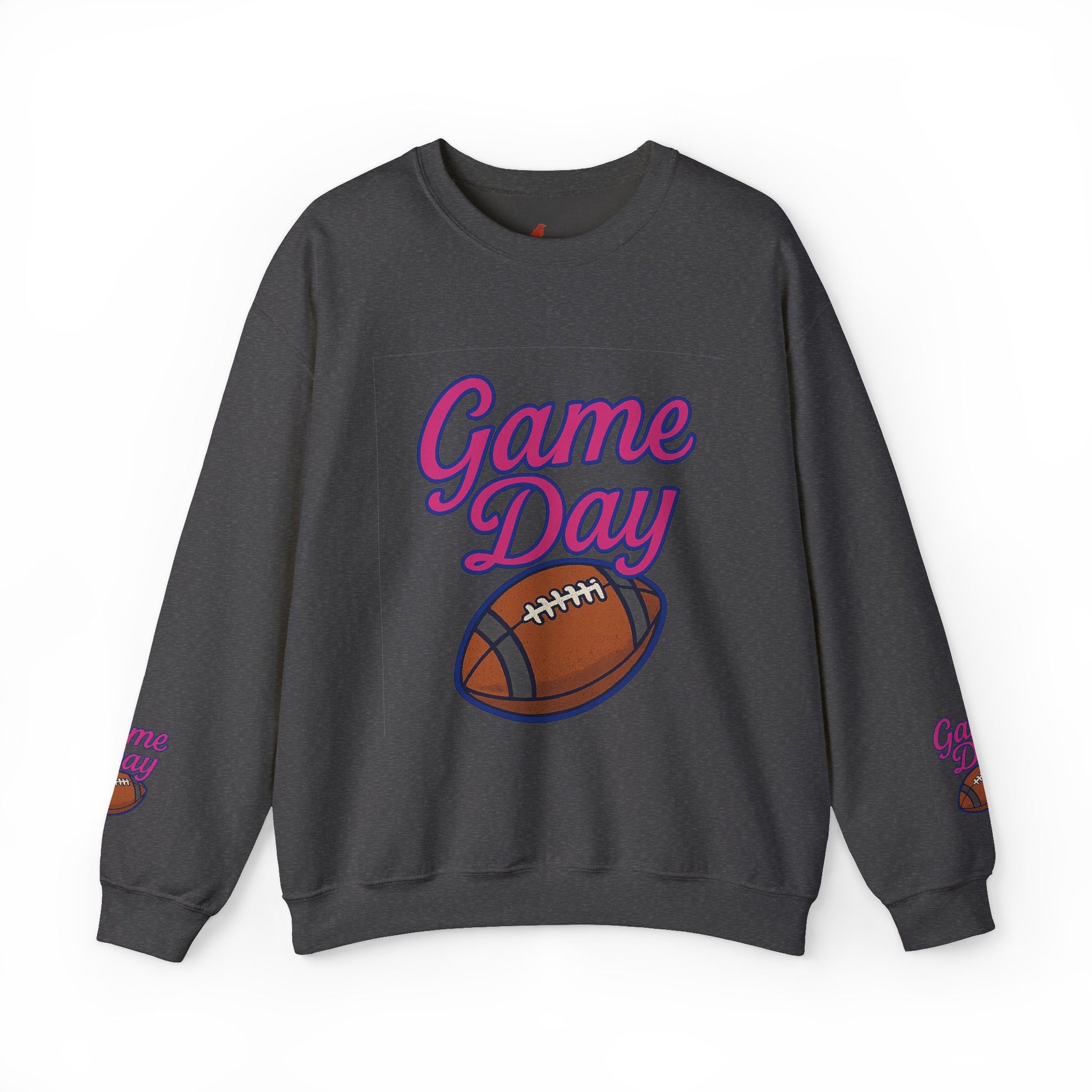 Get ready for the big game with this cozy Unisex Heavy Blend™ Crewneck Sweatshirt! Perfect for those chilly game days, it features an eye-catching 'Game Day' design accompanied by a classic football graphic, making it a must-have for sports enthusiasts. The soft, medium-heavy fabric ensures warmth and comfort, ideal for cheering on your team from the stands or lounging at home. It seamlessly fits into your everyday wardrobe, offering versatility for casual outings, tailgating parties, or watching a game with friends. The target audience includes sports fans, casual wear lovers, and anyone looking to celebrate game days in style. This sweatshirt is great for sporting events, football season, birthdays, and more!