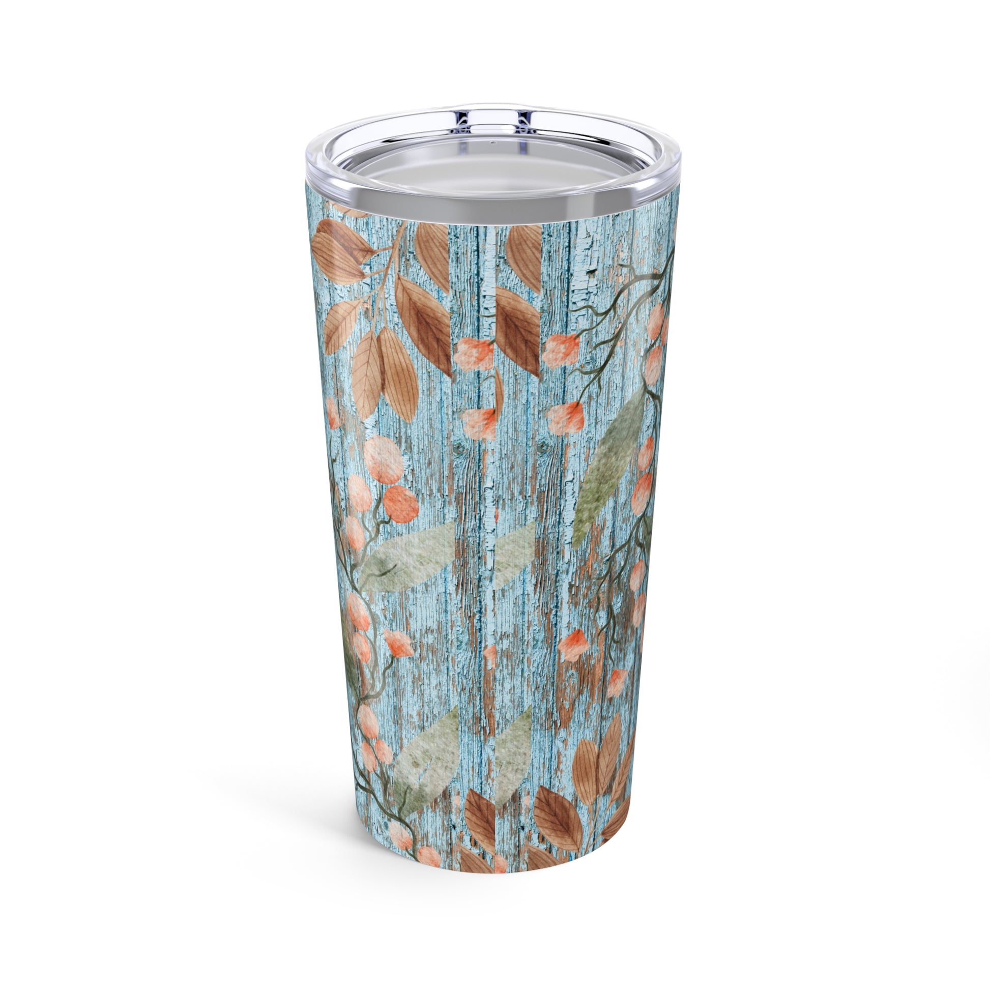 Rustic Wood Tumbler, Farmhouse Style Stainless Steel Drinkware, Double-Wall Insulated Mug for Coffee Lovers, 20oz Cup Holder Gift, Weathered